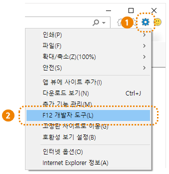 2. Internet Explorer 창 하단에 개발자 도구 화면이 나타나면,